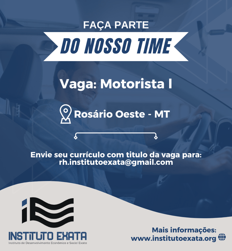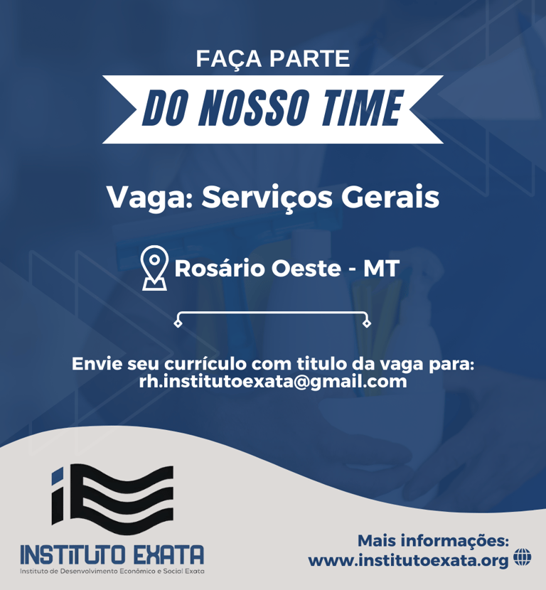Envie seu currículo para: rh.institutoexata@gmail.com