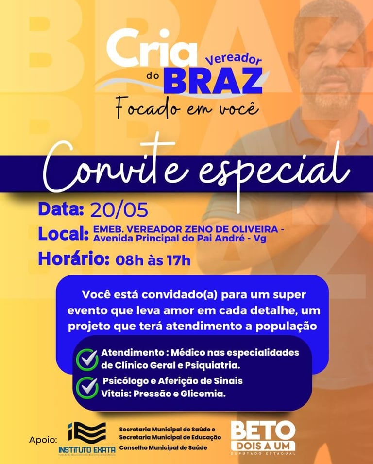 Ação Social para a área da saúde com o Vereador Braz em parceria com o Instituto Exata.